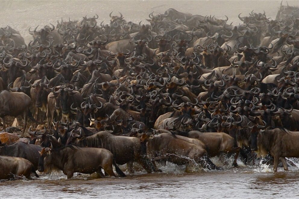 A massive herd of wildebeest was spotted crossing the Mara River on the 9th of August at 0 Loop.