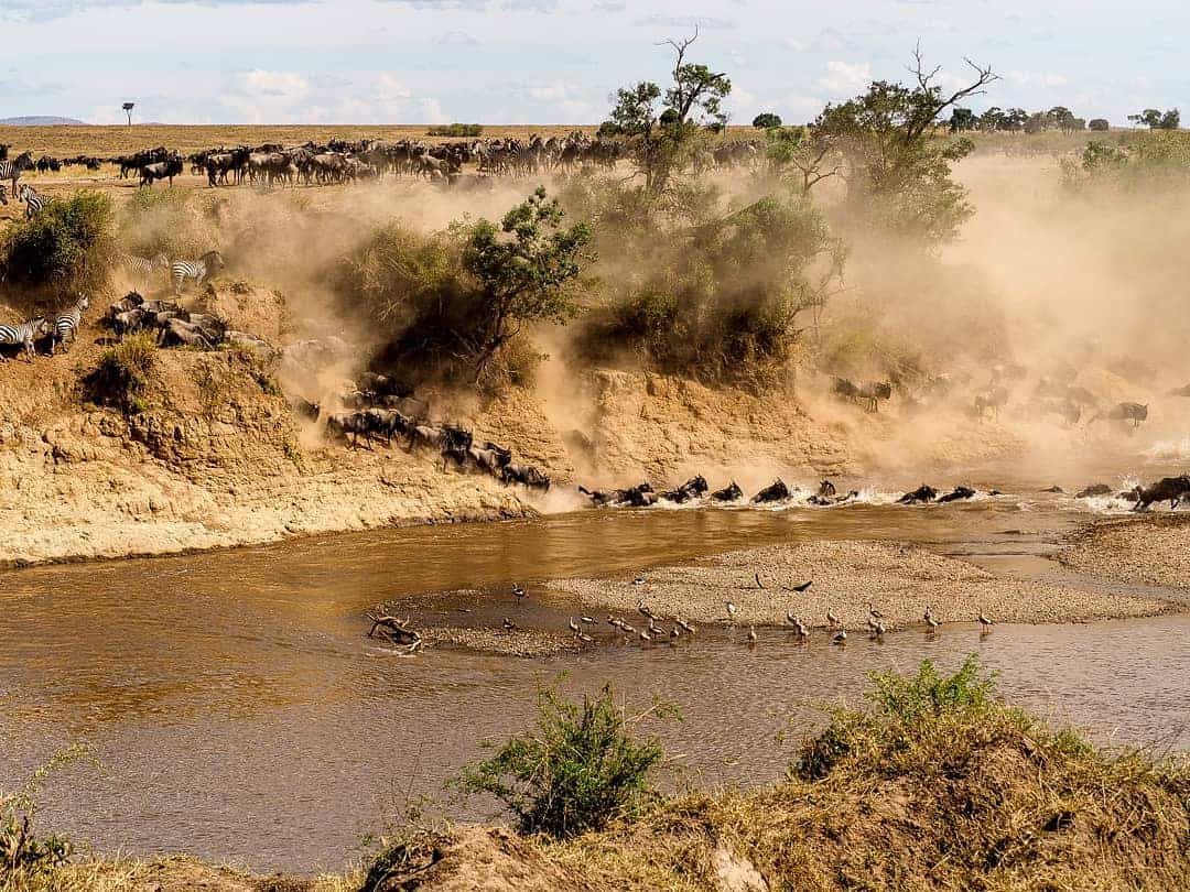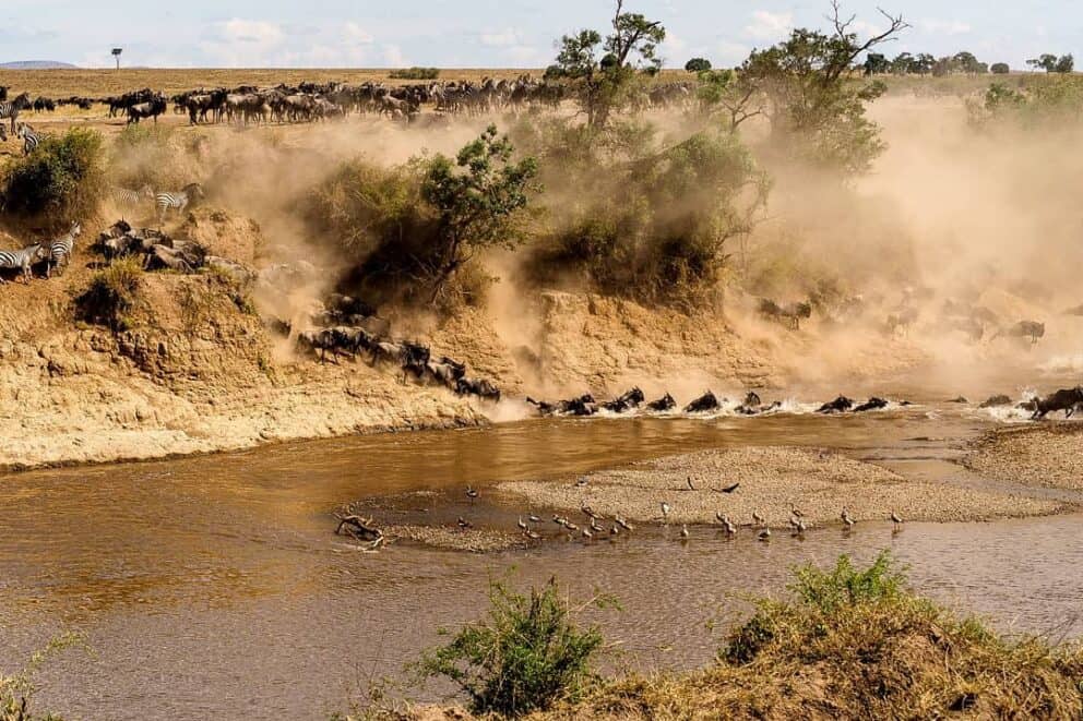 Massive river crossing in the Lookout area, Mara Triangle – Maasai Mara National Reserve.