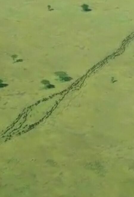 We got some low quality photos from the air this morning. Currently the migration is moving in a North Westerly direction and is slightly south of due west from Seronera, spanning between 10 and 20 miles from the airstrip. The pilot didn’t get a comprehensive look but says the front-end should soon be on the edge of Singita Grumeti Reserves in a few days from now. So they seem to be on the move and slightly early again this year. Thanks and Regards, Joel