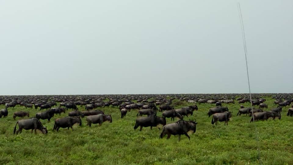 Ranger guide Hilary witnessed the Great Wildebeest Migration on the southern Serengeti plains spread out all the way to the between the Ndutu plains and Kusini.
