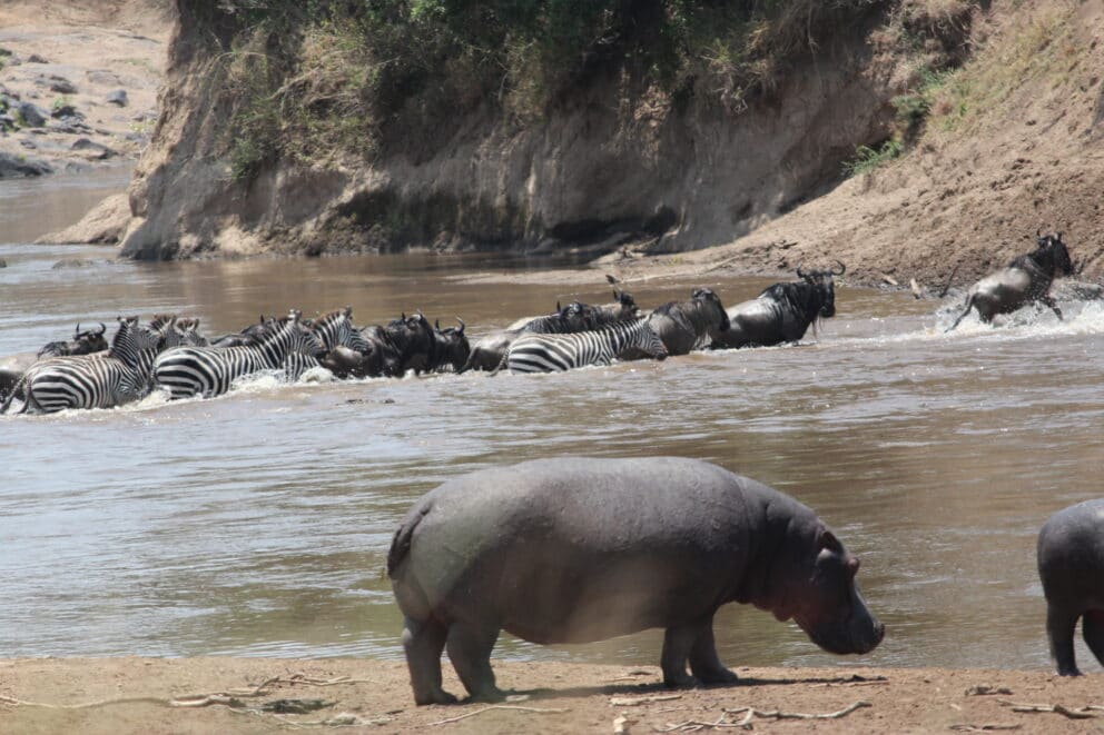 Here are some images of yesterday's mini crossing just near the main crossing point. The crocodiles had a feast, prompting the herds to be fewer in numbers.