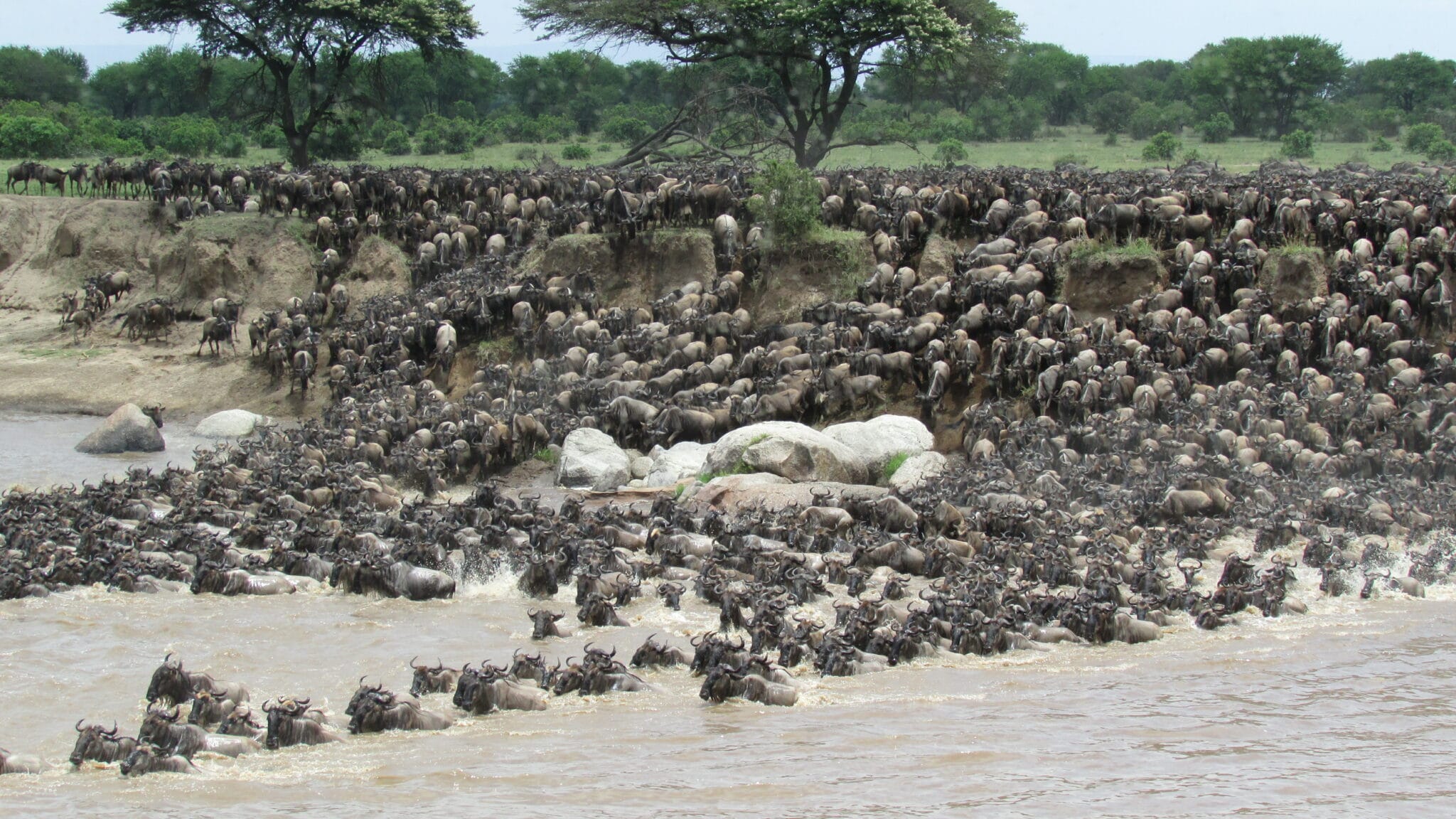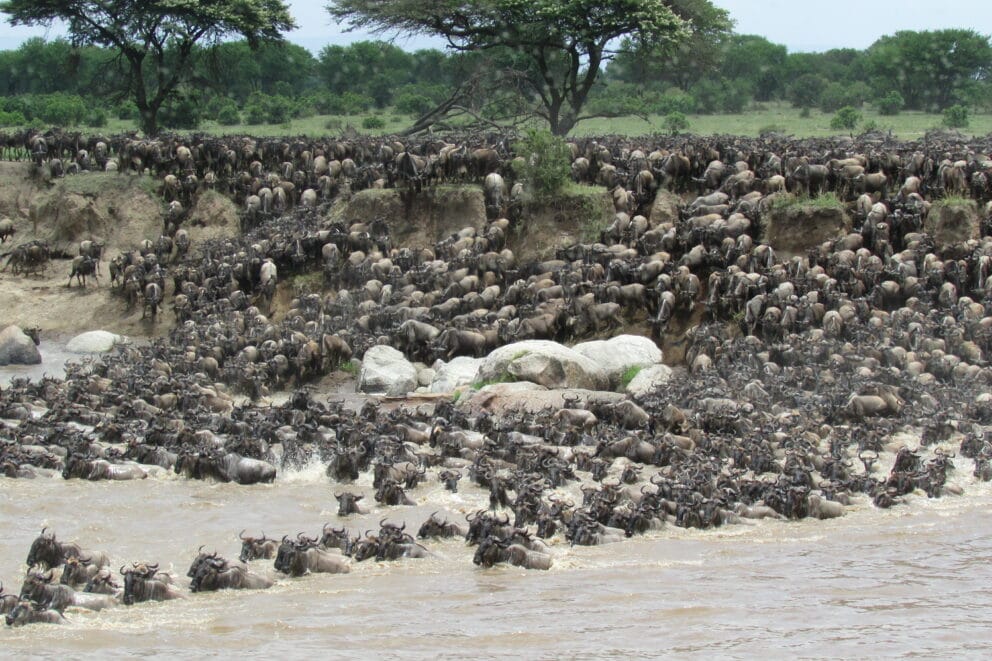 Afternoon Carel. Huge herds of Wildebeest and Zebra crossed at no 7 this morning(Photo Credit-Oredi Nondo).they were heading south. We received 55 mm of rain yesterday afternoon and it seems that it has sparked more urgency towards the south. As I was flying across the southern plains from Arusha, I saw a few herds already arriving at Seronera as seen from the plane.There is huge herd of Wildebeest at Makutano and our guides are anticipating that the herds might cross this afternoon. Best Regards Lewis