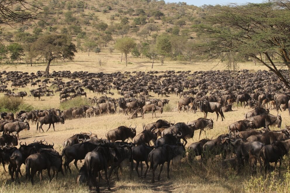 An update of the migration from yesterday morning. Huge herd of wildebeest. at least 10,000 strong 15 mins south of Serengeti Pioneer Camp, they have past Moru and heading towards Lake Magadi.