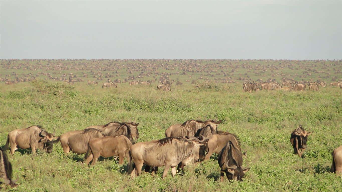 The area is full of wildebeest. But spread out. Last night from meadow through binos looking out at Triangle and up to Lemuta / Gol – wall to wall wildies.