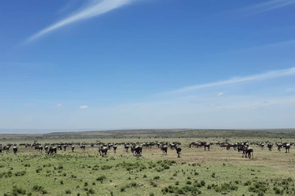 Rekero Camp safari guide, Nicholas Semeyioi Kiswaa witnessed a large number of the Loita migration in the Naboisho Conservancy earlier today.