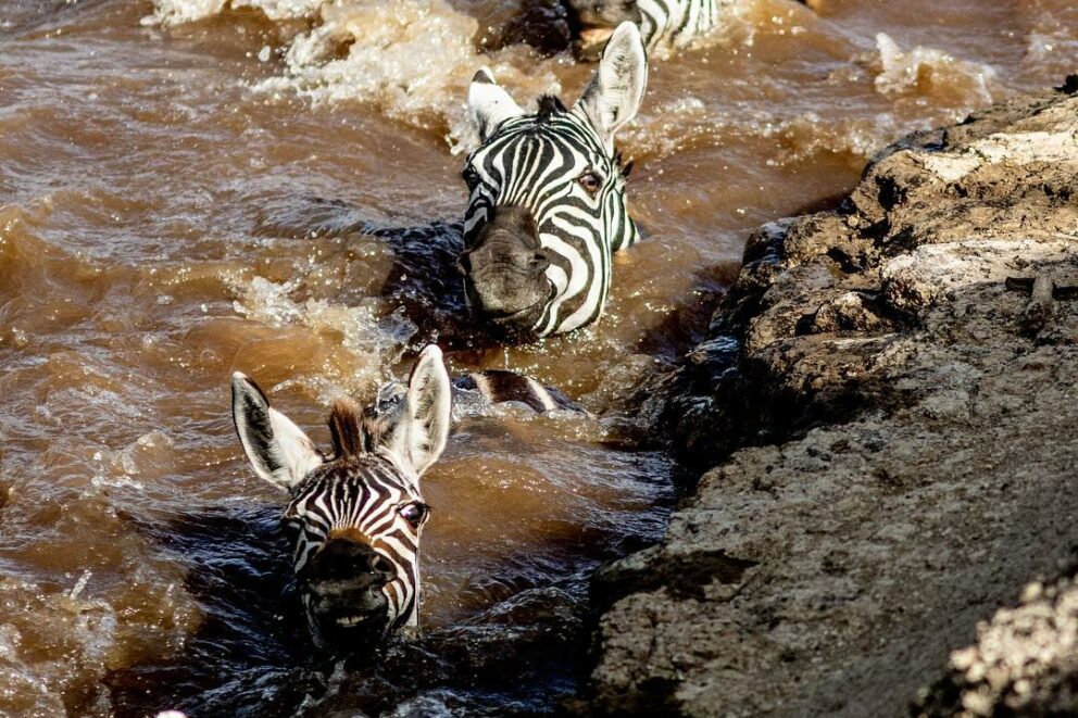 Brent Leo-Smith captured a dazzle of zebras crossing the Mara River in an area they don't normally cross in the Masai Mara National Reserve. The point has deep water and steep backs far from the traditional crossing points.