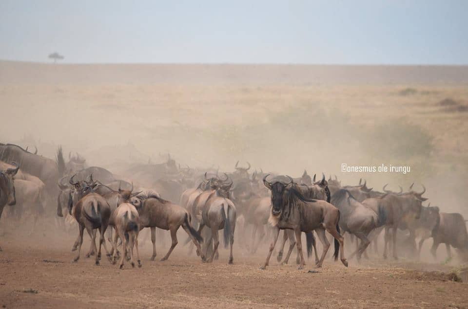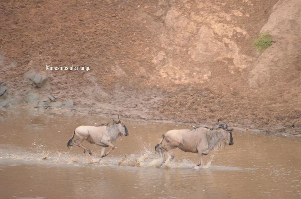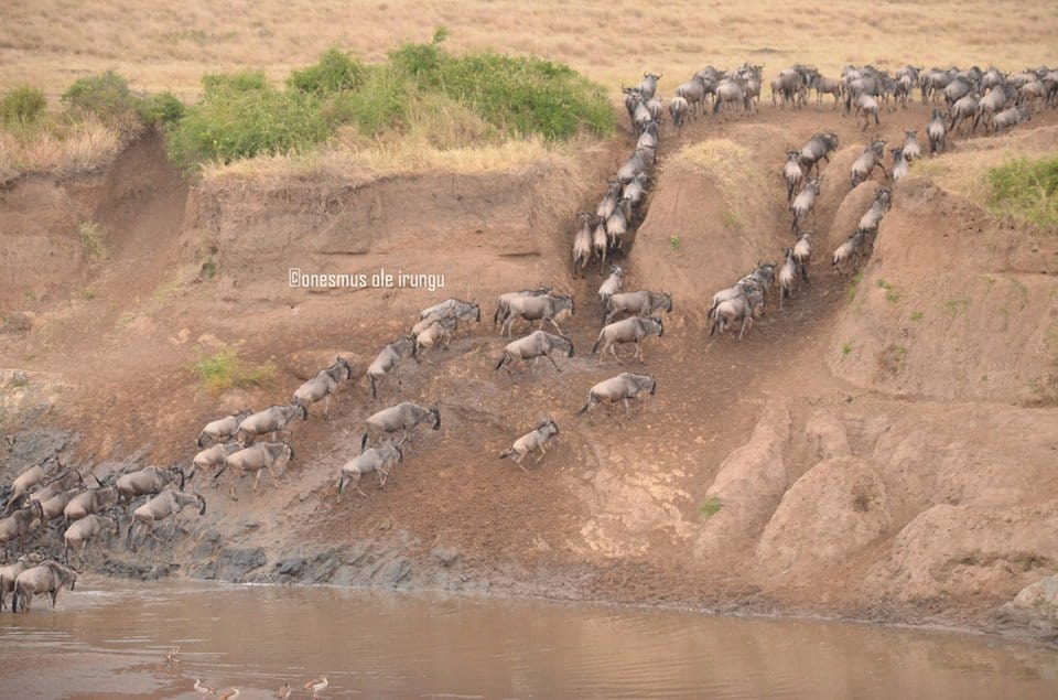 After waiting for exactly 8 hours and 42 minutes by the Banks of the Mara River. Onesmus Ole Irungu finally captured thousands of wildebeest crossing over to the Mara Triangle en-route back to the Serengeti.