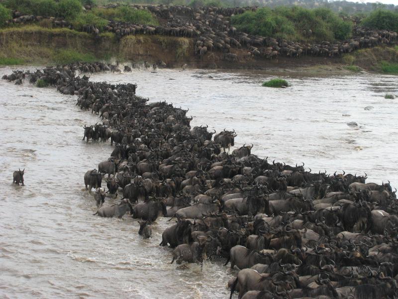 September offers more hot and dry weather, as the dry season continues in the Serengeti and Masai Mara. Kuria Hills guide Steven spotted the wildebeest crossing the Makutano crossing point from the Bologonja bridge.