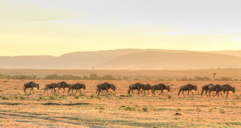 Resident wildebeest in small herds are being seen moving through the conservation areas such as the Mara North conservancy.