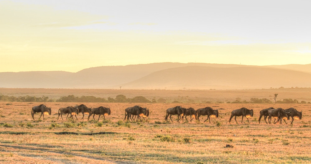 Resident wildebeest in small herds are being seen moving through the conservation areas such as the Mara North conservancy.
