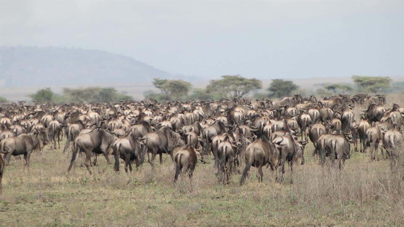 Small pockets of wildebeest and zebra, including a group of about 1000 out on Caracal Plateau yesterday. Hamisi, one of our drivers took this photo on caracal plateau yesterday afternoon.