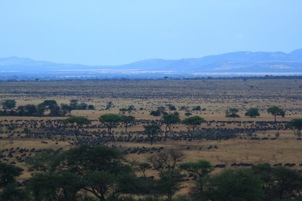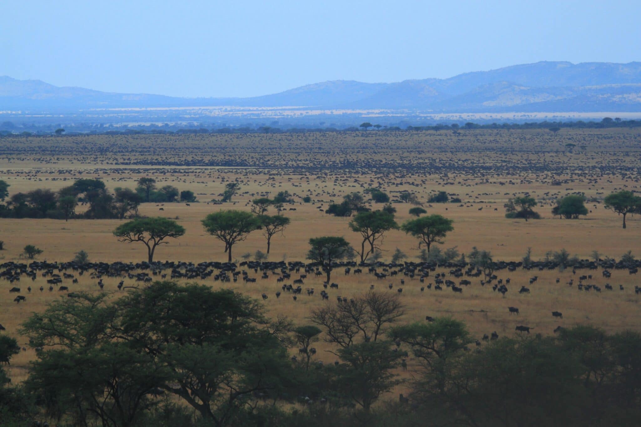 This morning, as far as the eye can see, there are still literally hundreds of thousands of wildebeest colonising the area along our southern boundary with the Serengeti National Park.