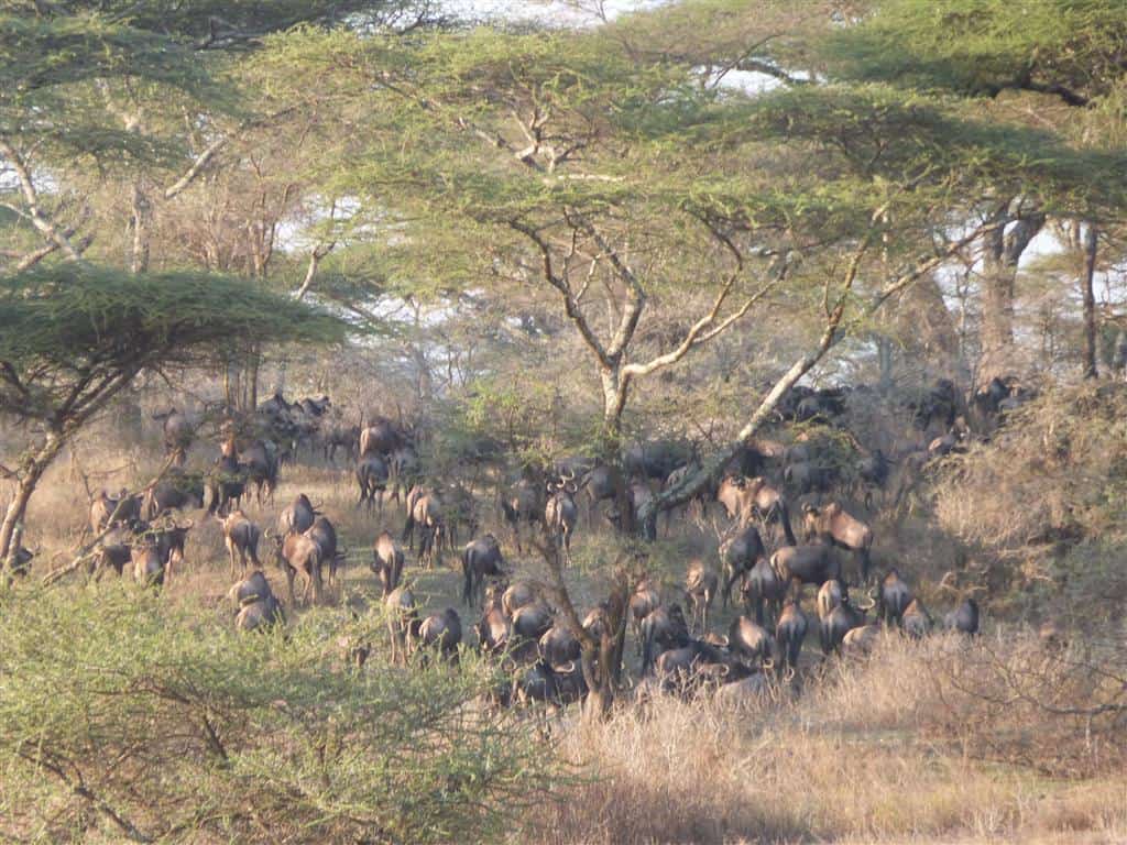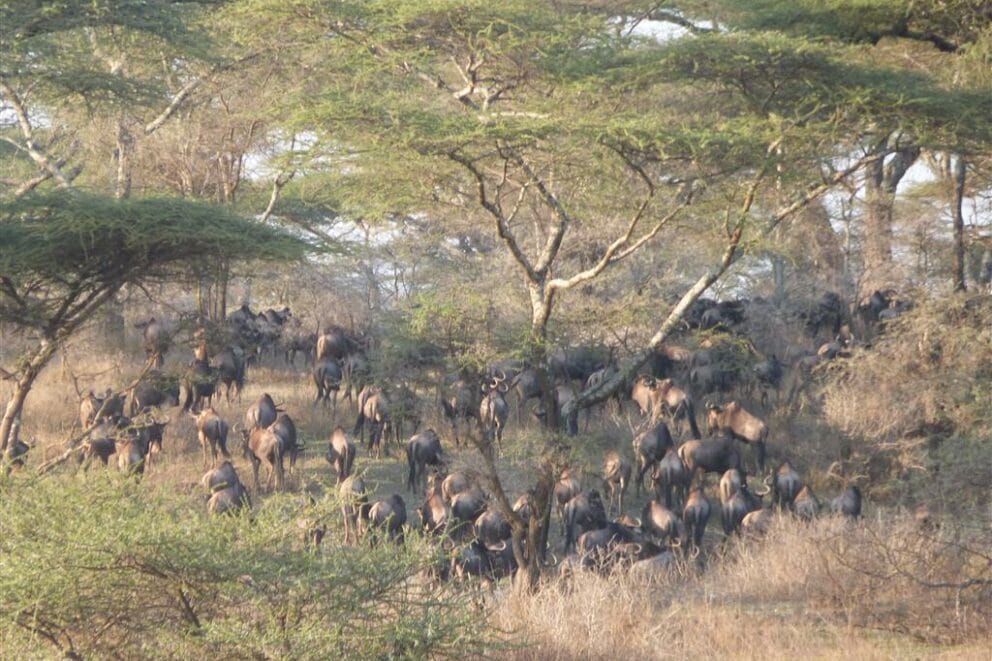 Good Morning Carel Very pleased to inform you that the first wildebeest are back at Ndutu!! We found a group of about 250 in small marsh woodland, and approx 80 at Long gully. Although we have had some good rain, there is still nothing to eat here, so I think they will head back towards Hidden Valley and beyond for a while yet. The 12 lions of Marsh Pride were following the large herd very determinedly! Have a good day Ainslie