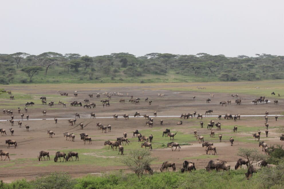 I just came from Ndutu. It is raining and the area is teeming with wildebeest and zebras. The herds had been around Lake ndutu through to small and big marsh heading towards Miti Mitatu and the Hidden Valley.