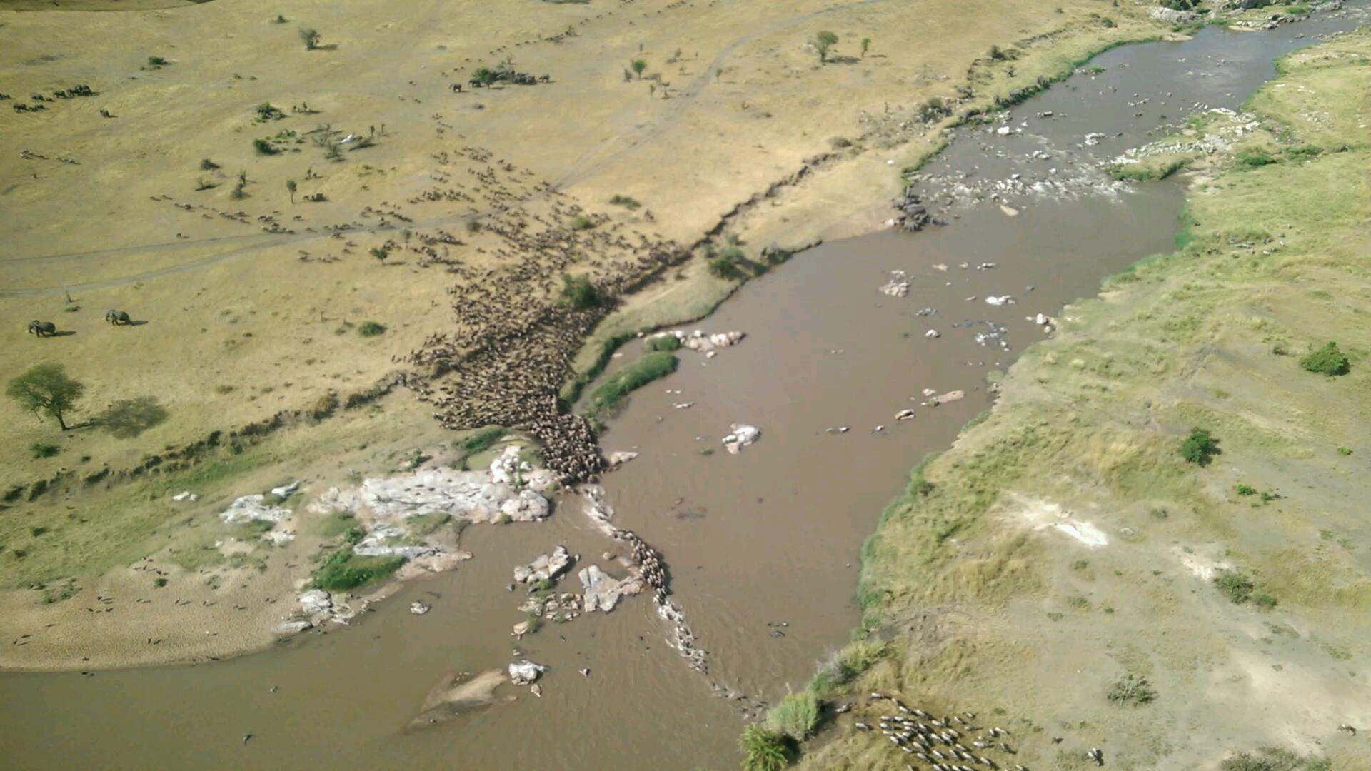 Here's an aerial image I took of a Mara River crossing near Kogatende last week. The herds have continued to move south at the moment.