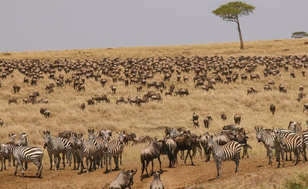 ENQUIRE TODAYBob Prescesky spotted a herd of wildebeest and zebra after crossing the Mara River during the great migration on the Maasai Mara side. The herds were fortunate enough to avoid the crocodiles waiting in waters for an easy meal.