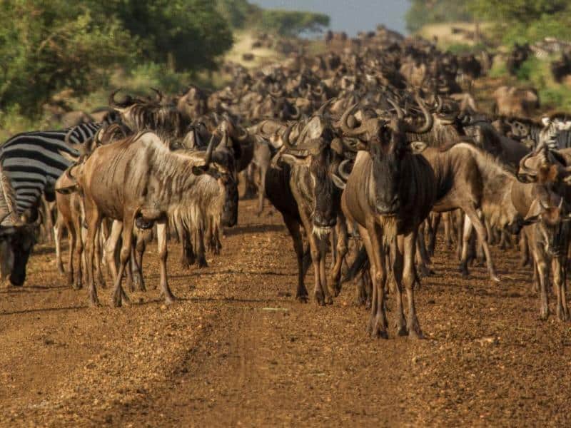 Some of the wildebeest have settled into the Moru Kopjes on their long trek to the Southern Serengeti short grass for the calving season.