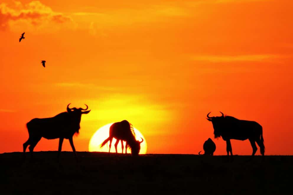 Morning Carel – The Loita herds have been on the plains right in front of camp for the past 2 days. Thousands of wildebeest grazing on the lush green grass. They seem to be happy here for now but “talk” is that they might start heading back south in a couple days. Attached a cool picture of the wildebeest in sunset. Picture taken from camp! Regards, Amy