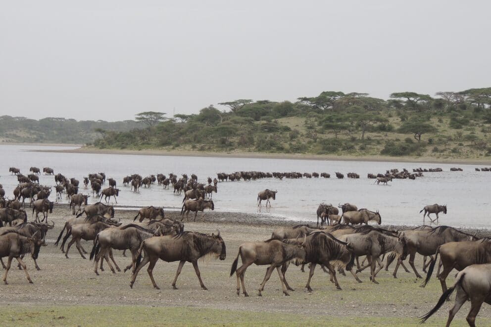 Part of the wildebeest migration has been spotted coming from the east Ndutu woodland for water and posture.