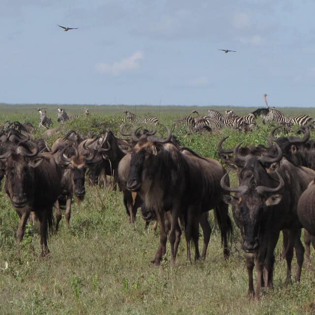 The Ndutu plains have been experiencing good rains for the past two days. However, the great herds with their calves kicked up their heels and followed the smell of the rains in the Golini area all the way to the Gol Mountains where the grass is highly palatable and rich in essential minerals the lactating mothers and growing calves need.