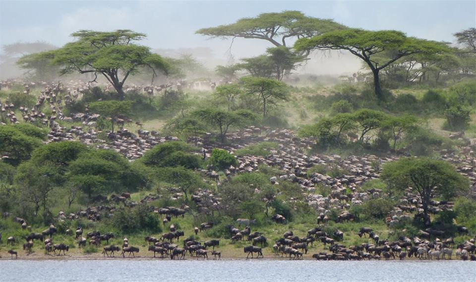 Lodge Manager, Ainslie Wilson spotted thousands of the wildebeest streaming down onto the Ndutu Lakeshore during her morning game drive.