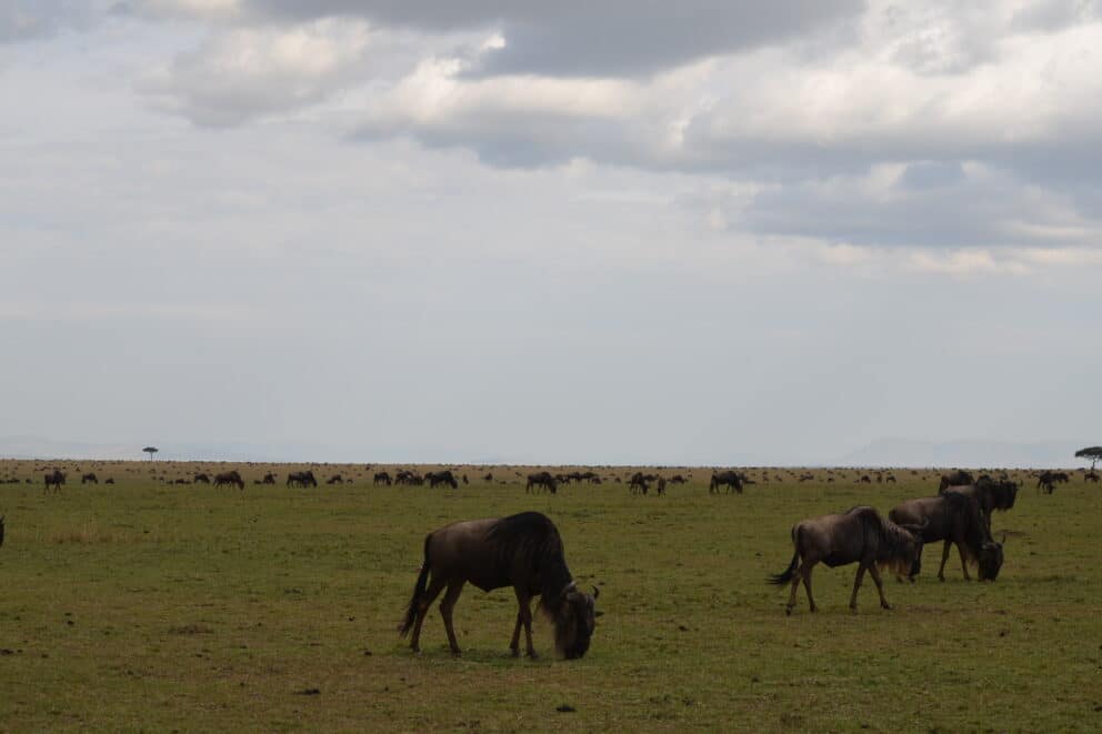 Morning Carel, thousands of gnus at posee plains central Mara, several crossings today at Talek River just 100 meters from Rekero Camp mess tent, no Mara River crossings yet, Look-out and Serena crossing empty, lots of rain all over the Mara and northern Serengeti so it will spread out the herds it seems, but it will prolong the crossing season. Regards Onesmus Irungu, Rekero Camp