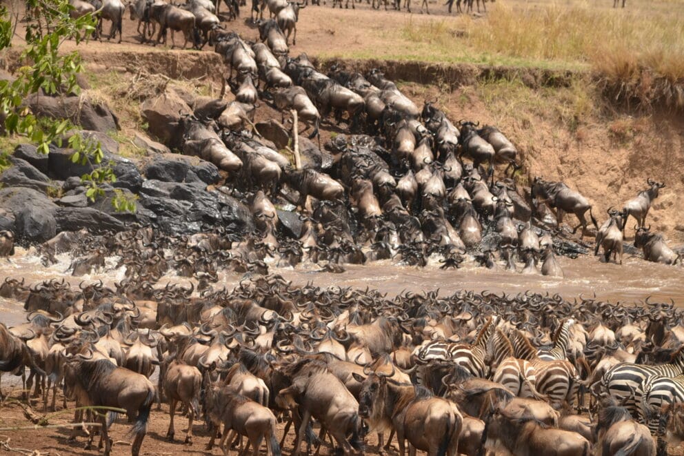 Yesterday, a couple of thousand wildebeests crossed at Cul de sac crossing from the Reserve to the mara triangle on their way back to Serengeti.