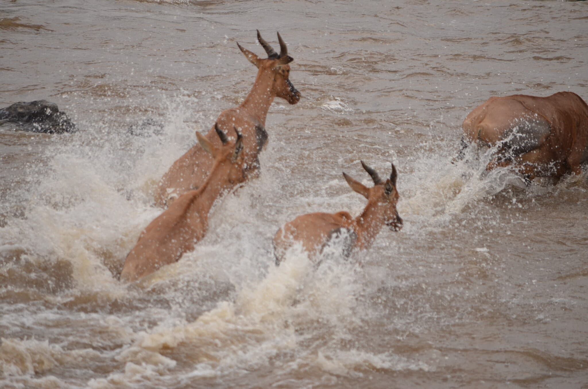 It is always fun watching Topi's cross the Mara River, they hit the water with full force and swim across in the shortest time possible.