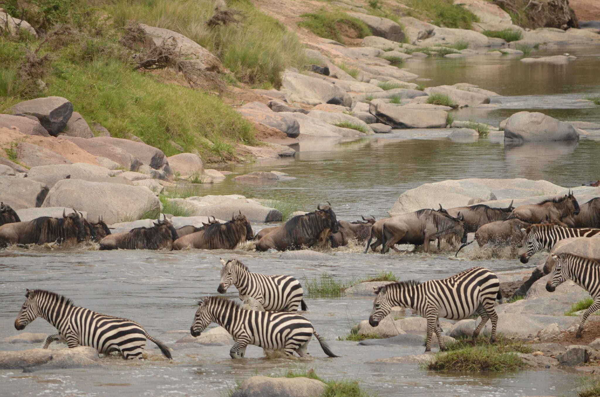 We witnessed a good two hour Talek River crossing right at Rekero Camp (100 meters west of the camp). Herds were moving from North to south part of Mara (Rongai Plains).