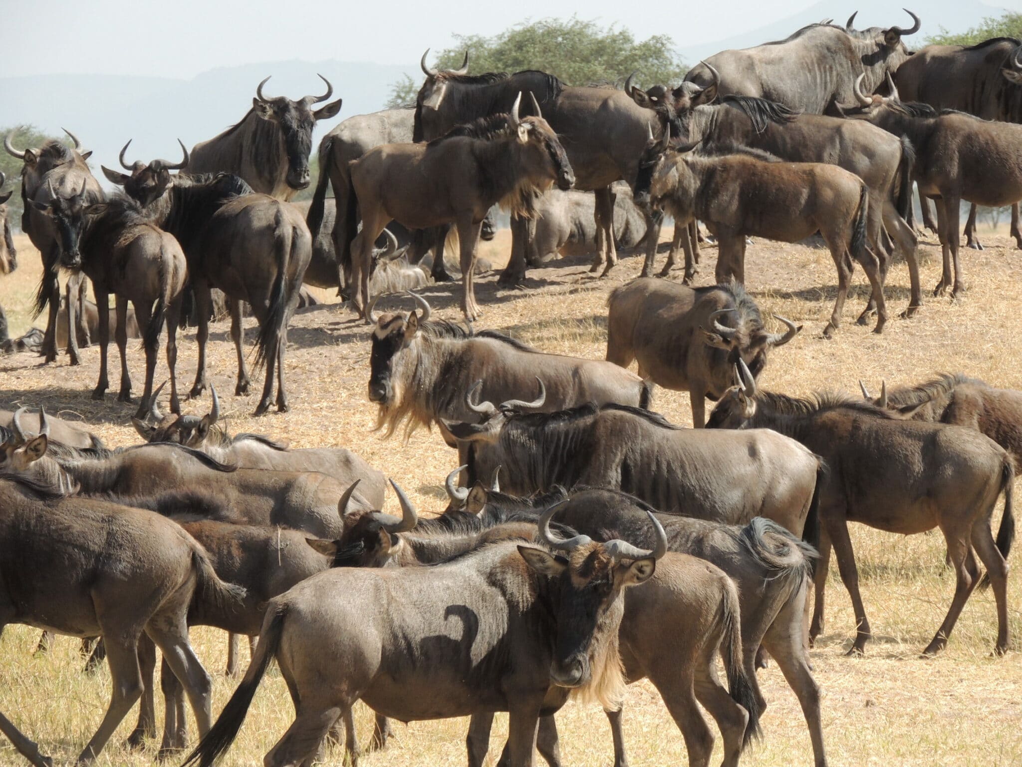 Currently we are around the Serengeti western corridor, although the area looks dry but a herd of wildebeest migration are all scattered all over!