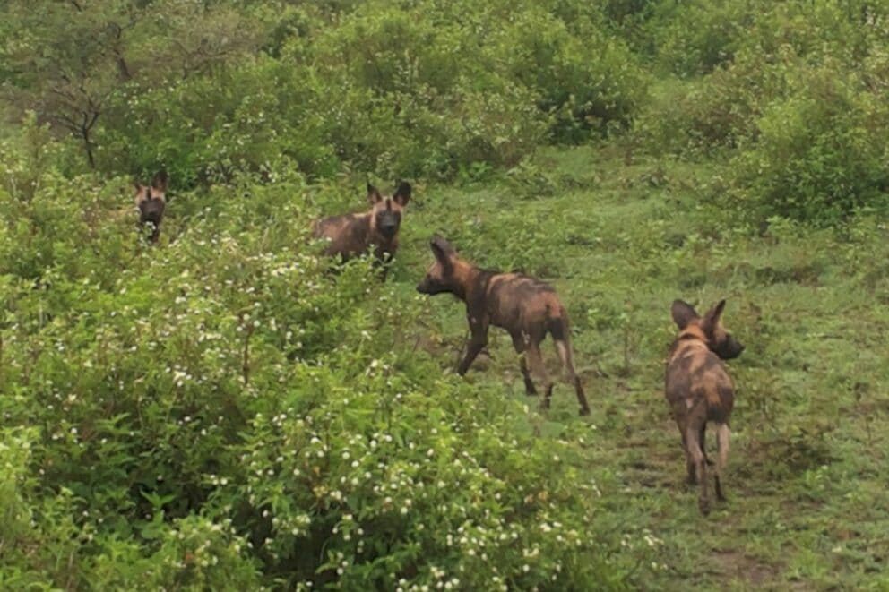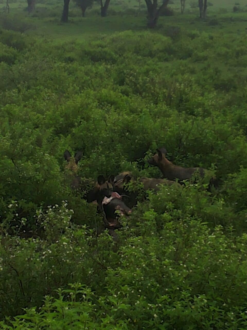These images of 9 wild dogs on a kill in the middle of Ndutu were just sent in by Nomad Tanzania guide Kennedy John. So it’s not all about the wildebeest this week!