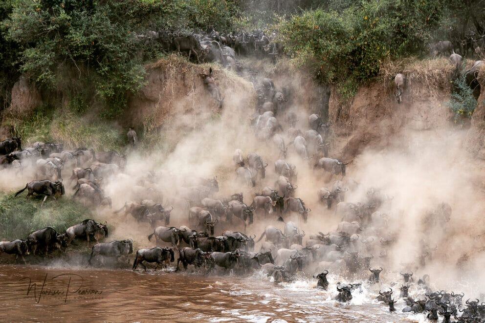Warren Pearson witnessed the herds crossing the Mara River in full force on the Northern Serengeti Plains. The wildebeest had to fight for survival against the crocodiles, due to the high water levels.