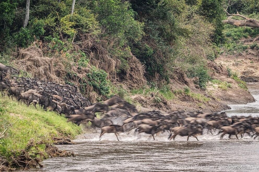 This herd was sighted crossing the Sand River in Kenya. It is the third week since the wildebeest herds have started crossing the rivers. The crossings are still in full swing as most of the herds move into the Masai Mara! Interested in our Great Wildebeest Migration Newsletter? Sign up now!