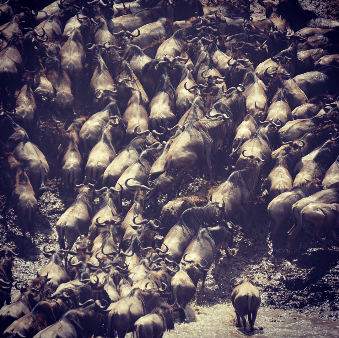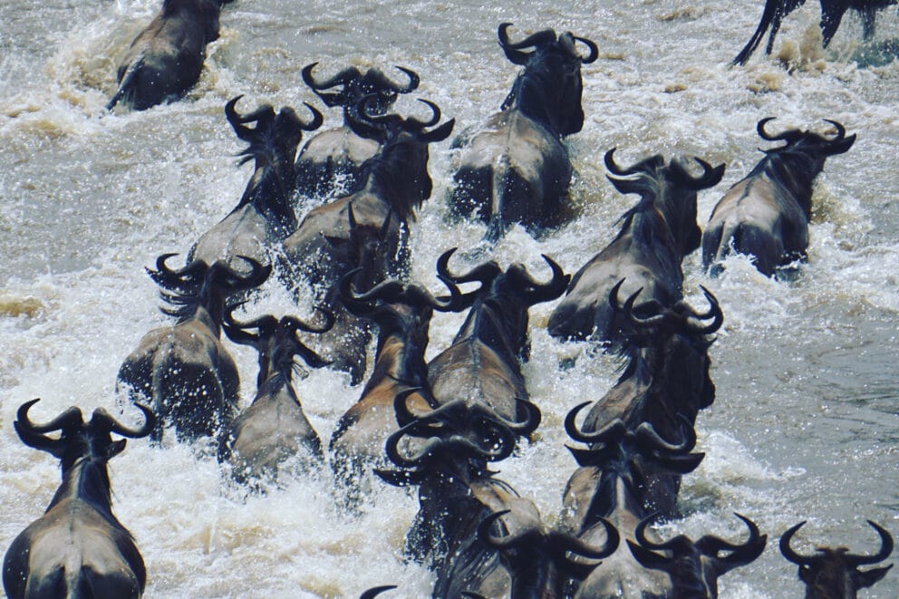 Dam encountered the impressive wildebeest migration crossing the Mara River on the endless plains of the Northern Serengeti National Park.