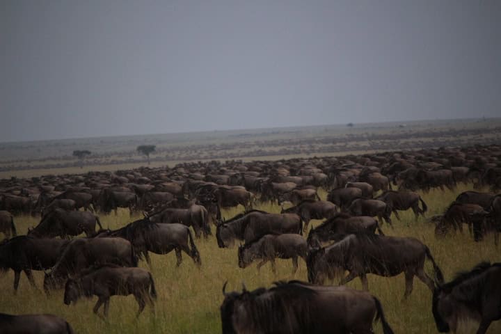 Yesterday afternoon, large herds of wildebeest and zebra both resident and migratory had moved from the Topi Plains and Malima Tatu areas and into the East Marsh, Bila Shaka and Musiara grasslands.