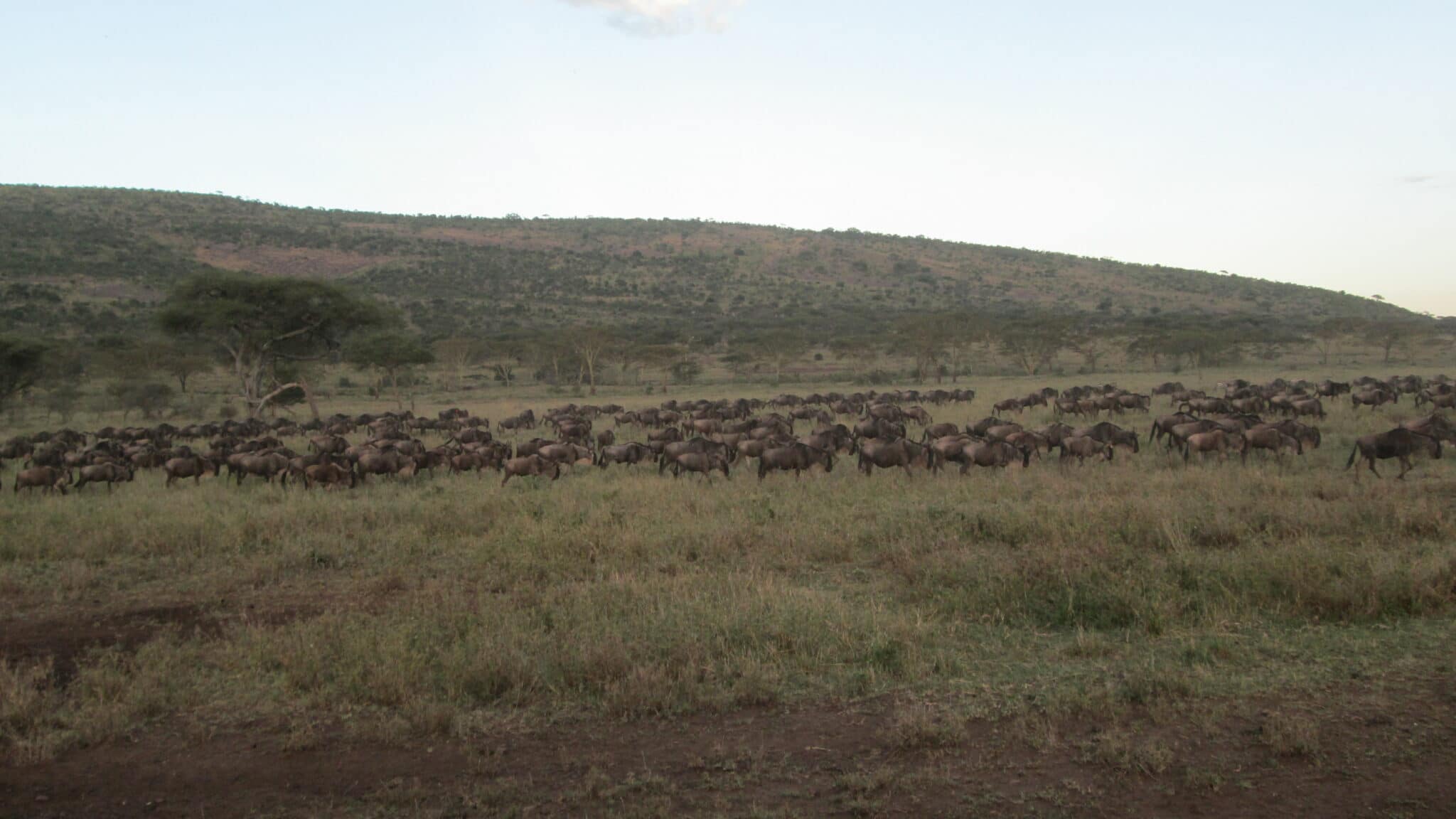 Morning Carel Some wildebeest moving through Moru and onwards towards the south, seems that there is some urgency and there must have been some rain towards Maswa and Ndutu. Regards Angel – Dunia Camp