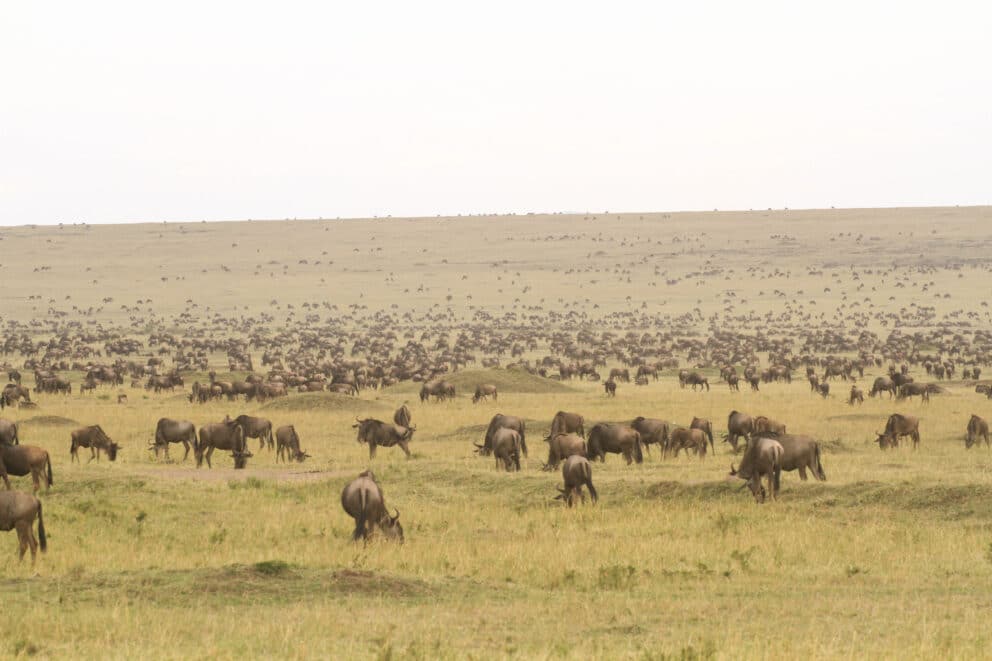 The wildebeest are covering most areas of the East Marsh, Bila Shaka, Rhino Ridge and north east Musiara grasslands. This photo was taken yesterday at 17:30.