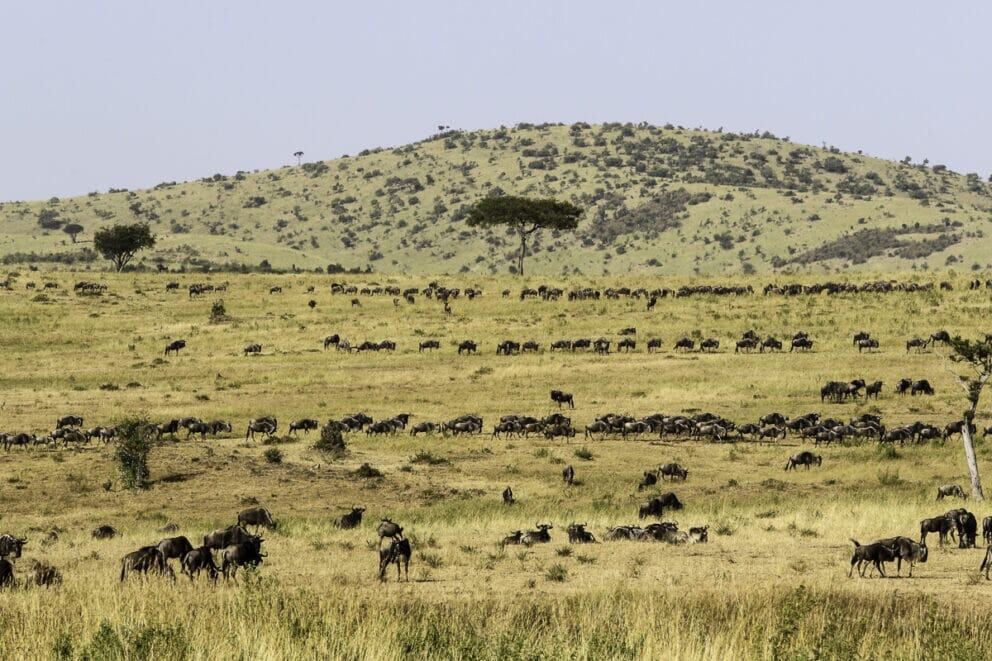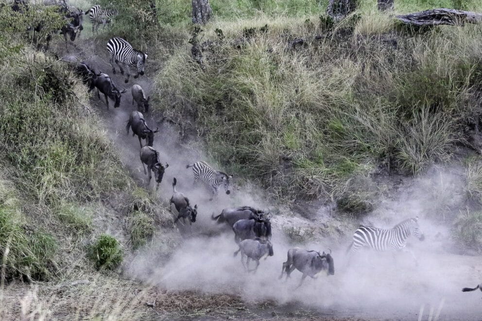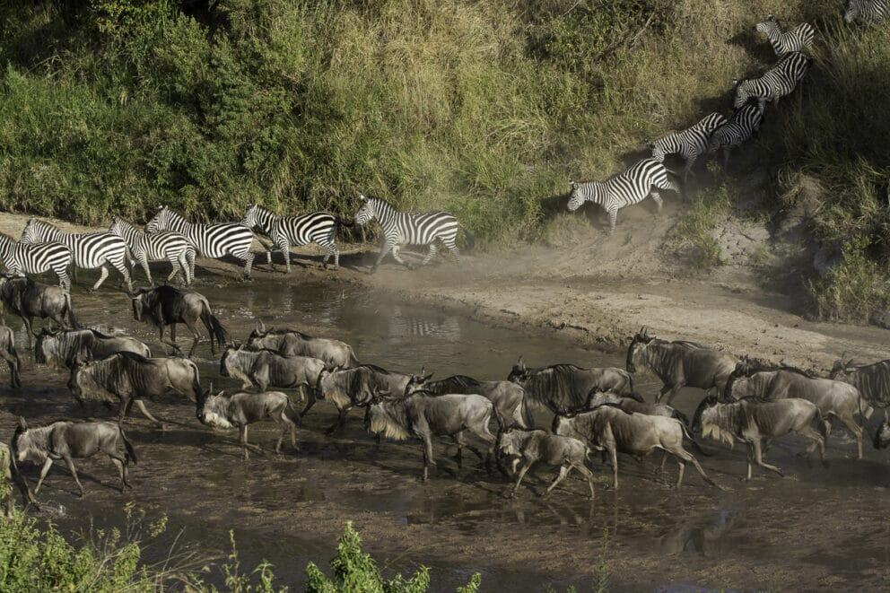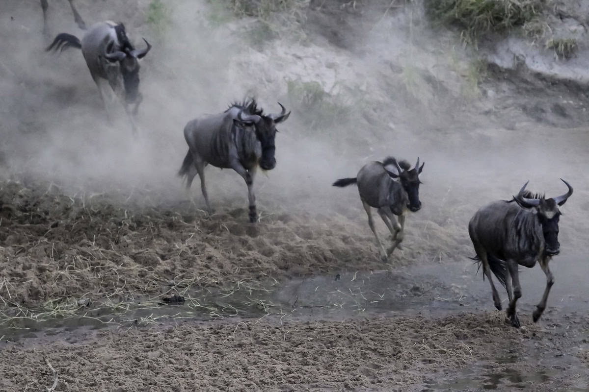 At least another 5,000 crossed the Sand River yesterday, and there are large numbers of wildebeest and zebra (at least 40,000) visible on the Serengeti side, most heading westwards parallel to the river, extending beyond Sala's Camp.