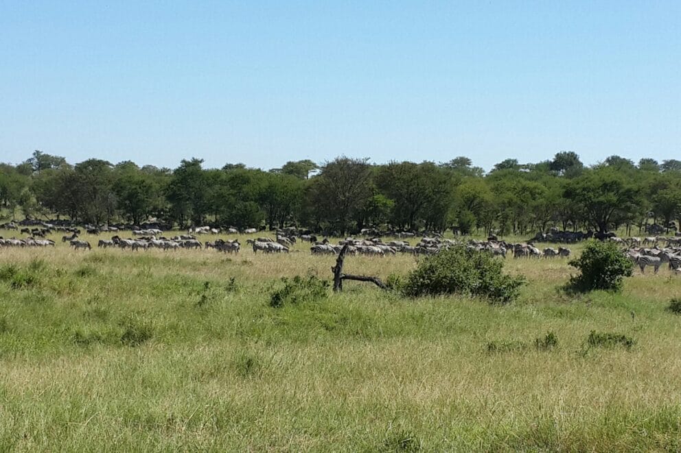 Yesterday morning Marc was driving from Lobo Airstrip to Buffalo Luxury Camp and found the migration has moved closer to the camp. Lots of zebra joining the wildebeest from the south and zebra river crossings are always special to see!