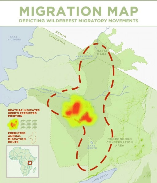 - Wildebeest migration movement: As the calves’ legs become fully functioning in May, the herds take up the pace.
