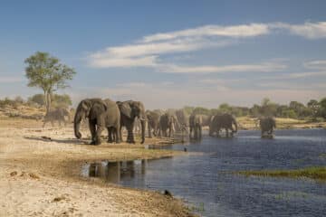 The Okavango Delta’s dry season begins in June, when animals come to...