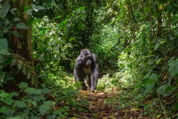 Mountain gorillas can be found in Uganda’s Bwindi Impenetrable Forest. Because of...