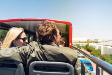 The City Sightseeing hop-on hop-off tour bus experience happens from open top...