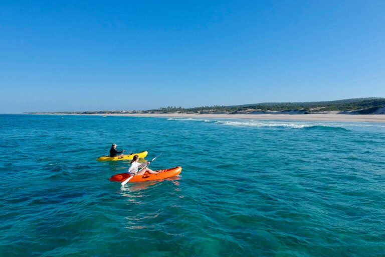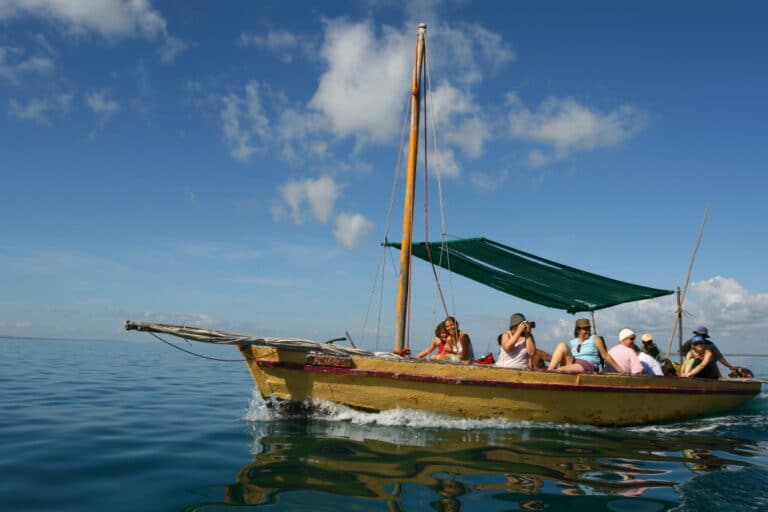 Bazaruto is the largest island in the archipelago protected in Bazaruto National Park, which lies some 20 kilometres offshore of the Mozambican mainland between Vilankulo and Inhassoro. A succession of white palm-lined beaches makes the island’s two resorts a perfect get-away-from-it-all holiday destination. Yet for most visitors, the main attraction of Bazaruto is the snorkelling and diving opportunities associated with the extensive fringing coral reefs. A dazzling array of brightly coloured and oddly shaped fish inhabit the clear waters of the coral gardens, and larger marine creatures – turtles, humpback whales and three species of dolphin – are also frequently seen. The island is also renowned for its challenging game fishing.