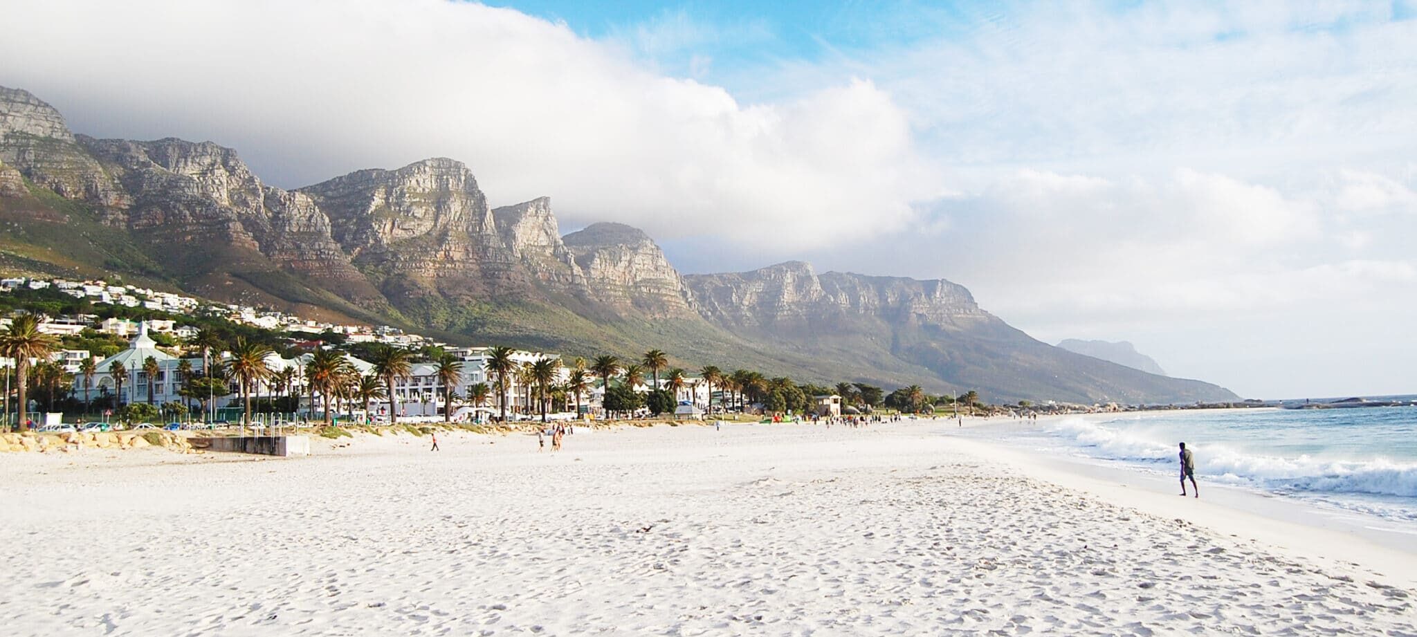 The beach in Camps Bay is not about sand-sport hustle. Here, you’ll find white sands flanked by palms, the calm Atlantic, and the light of the setting sun hitting the mountain backdrop. It’s the kind of postcard view that resonates after a safari-intensive week.