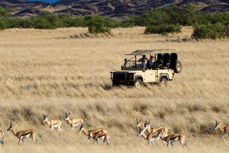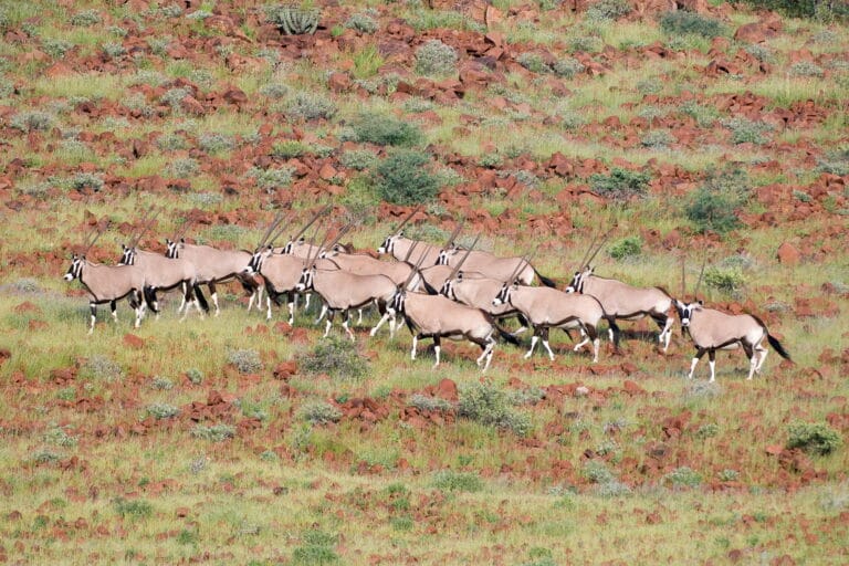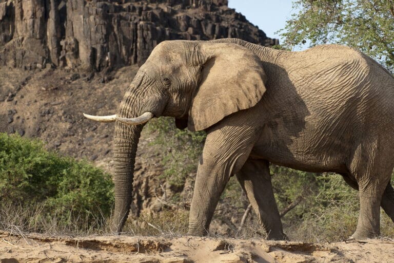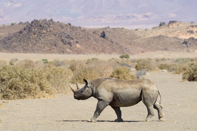 The region supports a fair amount of wildlife, including gemsbok, greater kudu, springbok, Hartmann’s mountain zebra and dry-country bird species. It is best known, however, for being the last desert stronghold of the endangered black rhino, and for its several herds of desert-adapted elephants, both of which are likely to be seen only on a few exclusive ecotourism concessions allocated by the government to private operators.