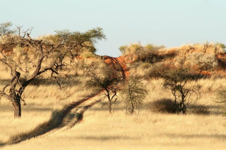 Most Kalahari habitat types are found here – rolling grasslands, dry riverbeds, fossil dunes, and grassed and bare pans.