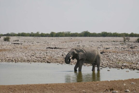 A lone elephant stands at the edge of a shimmering salt pan, its silhouette etched against the pale horizon. Around it, the landscape glows white and vast. A place where...