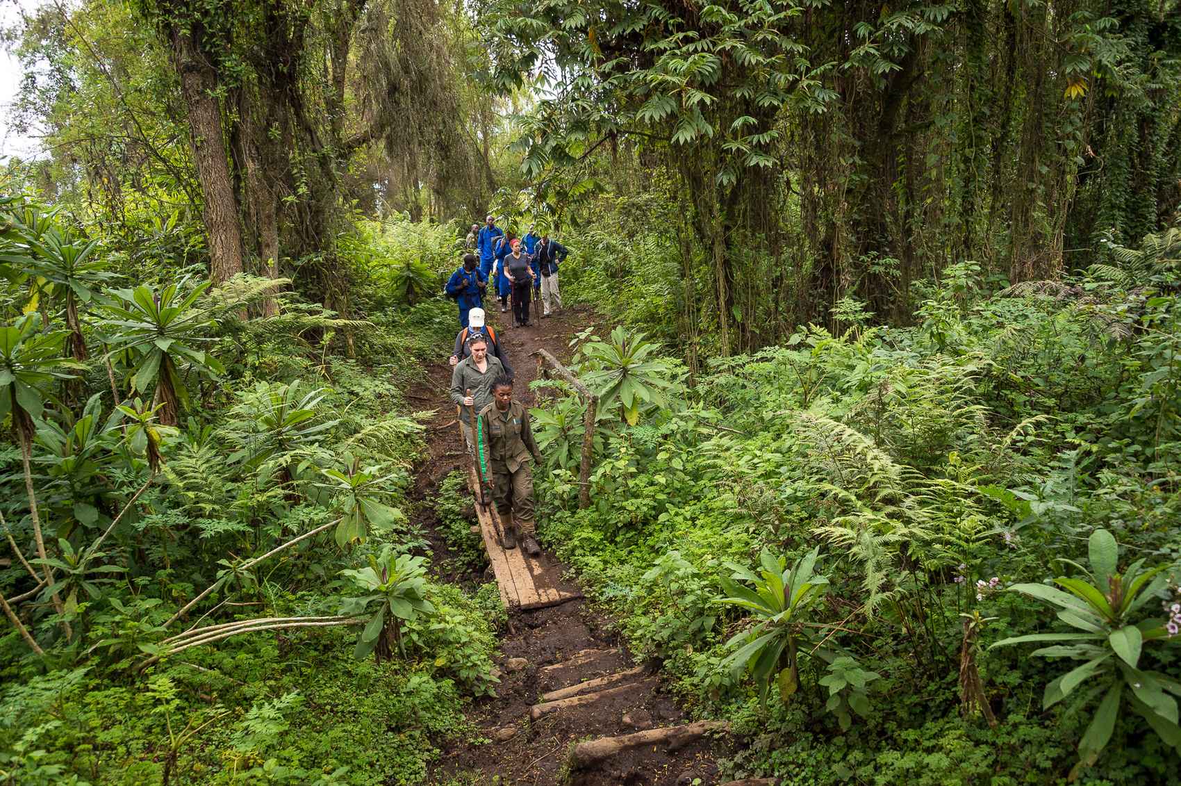Volcanoes National Park is best known for its population of mountain gorillas. This includes a dozen habituated groups, which can be seen during gorilla trekking safaris in Rwanda. Other wildlife includes the golden monkey (also endemic to the Albertine Rift), elephant, buffalo, giant forest hog, bushpig, bushbuck, and black-fronted duiker.