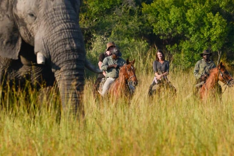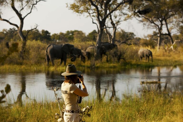 Lions and hippos (even lions hunting hippos), a great concentration of elephants, a stable population of African wild dogs, wide untouched wilderness and a selection of unique camps ensure that your Selinda safari is really special. Dereck and Beverly Joubert are renowned National Geographic filmmakers who know this 130,000-hectare landscape intimately. They have combined their talents with like-minded people in the tourism industry to create ecologically sensitive camps that are run according to a strict code of ethics, providing conscience-free yet superbly comfortable places to stay.